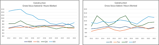 This post looks at the latest release of the input-output tables for 2022-23 for the four Construction industry groups of Residential building, Non-residential building, Heavy and civil engineering, and Construction services (the trades). The four industry groups are combined to get shares of total use of products by Construction.